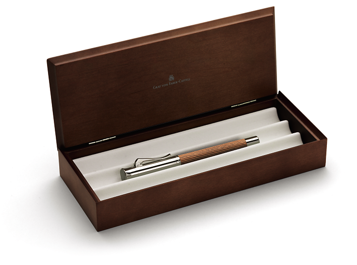 Перьевые ручки, ручки роллер, выдвижные карандаши и шариковые ручки в коллекции Graf von Faber-Castell Pernambuko имеют деревянный корпус с красновато-коричневым цветом.