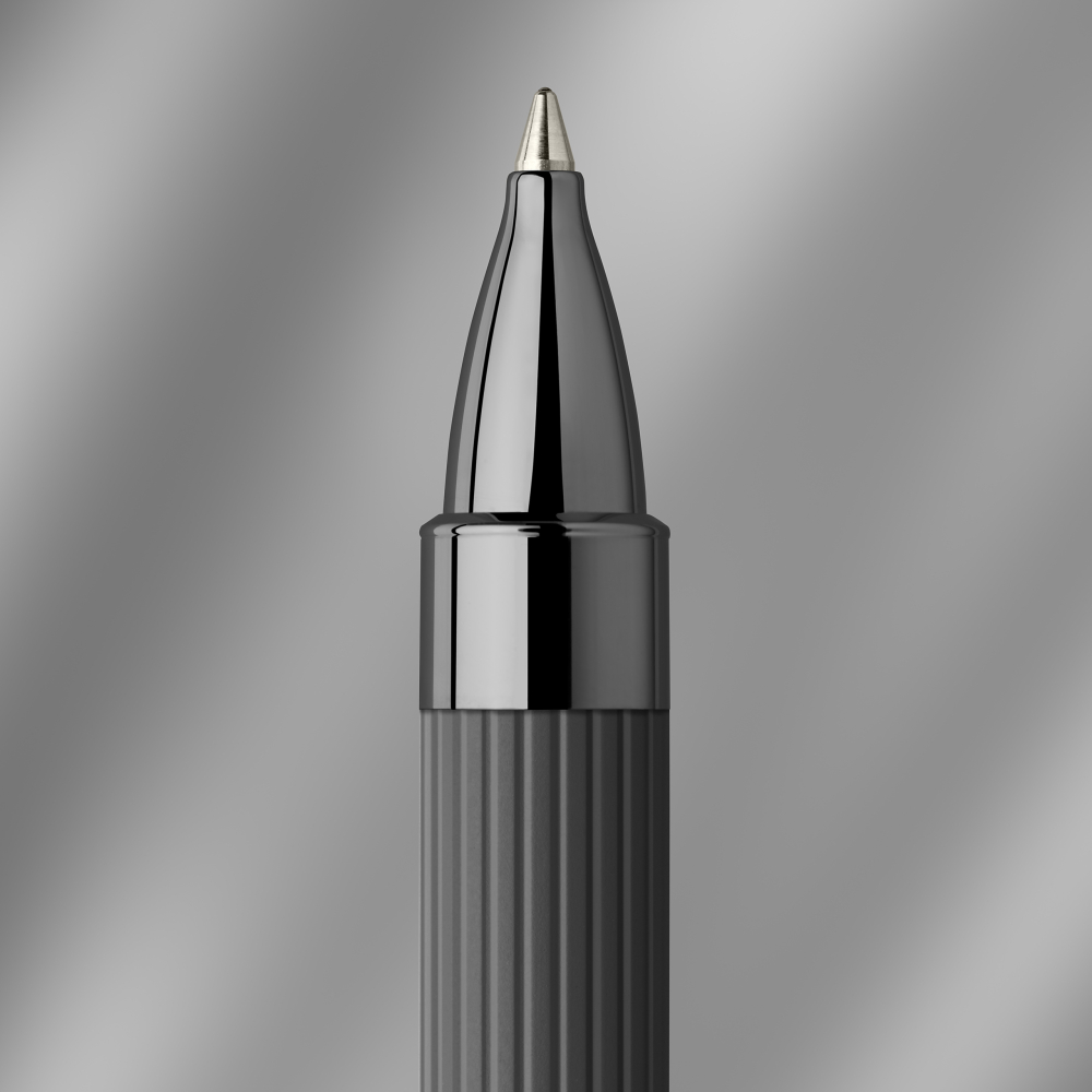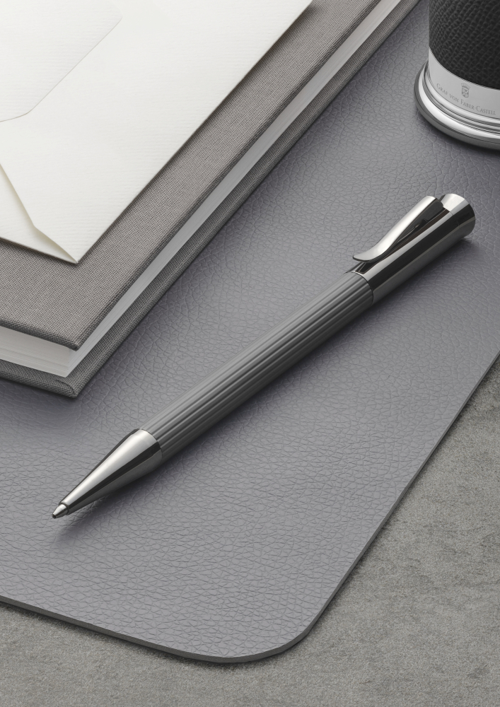 Тонкий рифлений корпус ручки Graf von Faber-Castell Tamitio зроблений із металу, відполірованого за кілька кроків. Інноваційний лак, що покриває поверхню, надає глибокий і шляхетний матовий відтінок. Багаторазово поліровані зона захвату та торець ручки, а також гравіювання  "Handmade in Germany" на ковпачкe, надають ручкам колекції Tamitio благородство та чудову якість виготовлення. Матеріал корпусу: ювелірна латунь, спеціальний матовий лак, деталі покриті платиною.